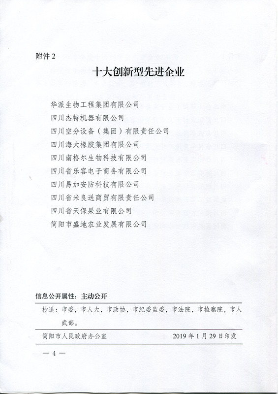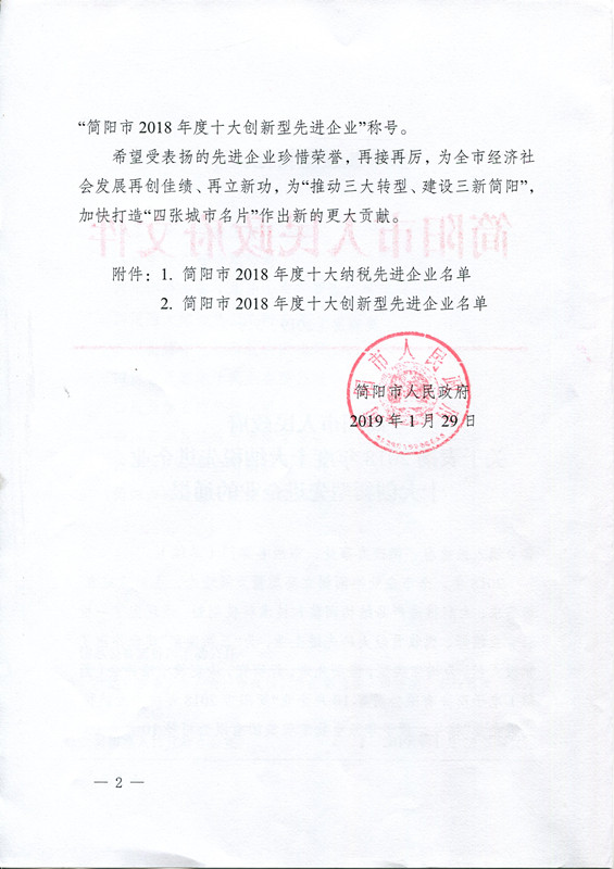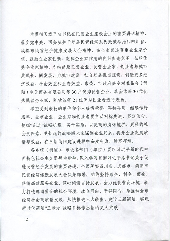 獲得2018年簡陽市優(yōu)秀民營企業(yè)